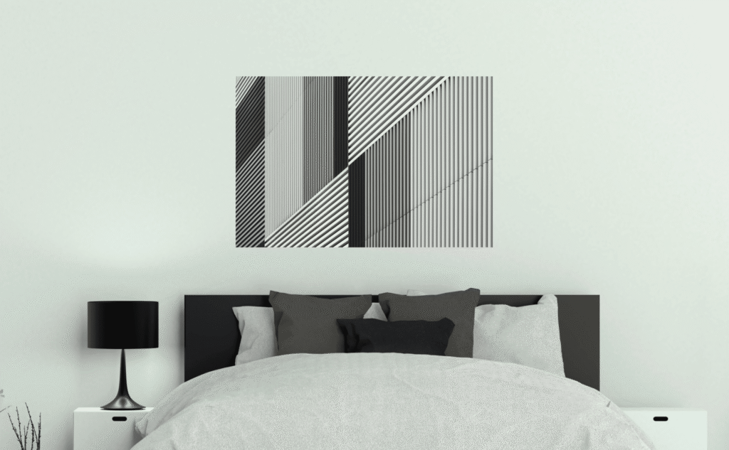 High-end bespoke prints that add sophistication and elegance to your master bedroom.